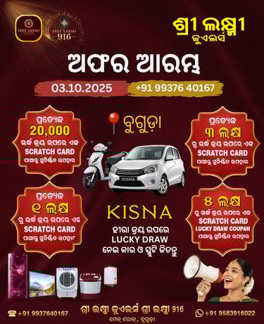 Visit Sree Laxmi Jewellers in Buguda, Ganjam District, Odisha for exquisite handcrafted gold ornaments and exceptional service.